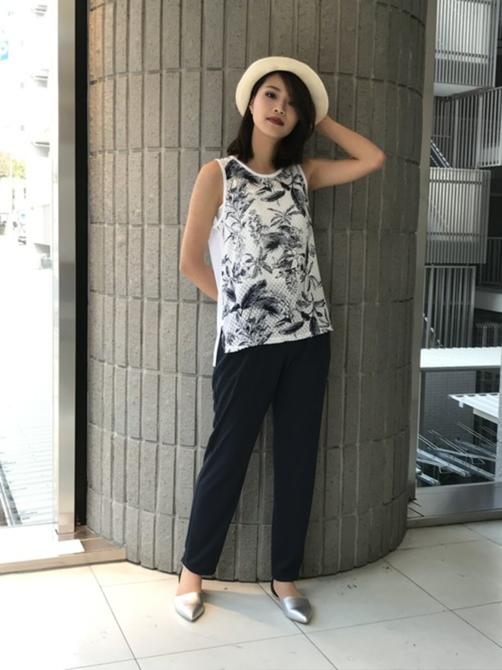 ismのTシャツ/カットソー「前面リーフ柄切替えノースリーブカットソー。」を使ったコーディネート