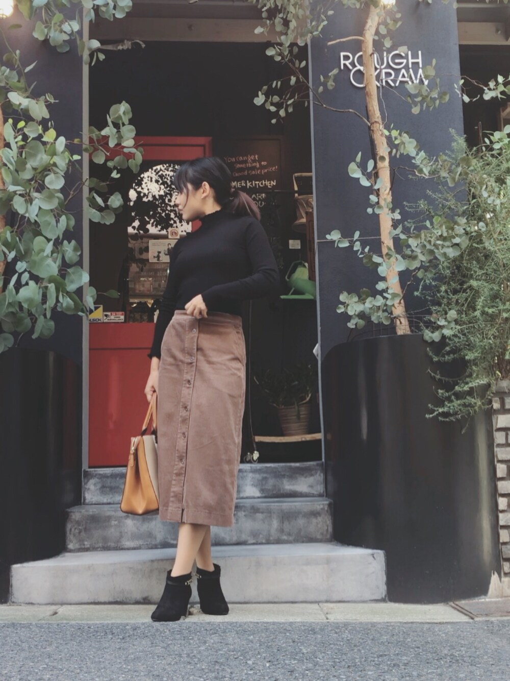 神戸トアウエストで撮影しました❣️ 最近買ったユニクロのコーデュロイスカート、色も丈も、お気に入りです😃 ユニクロのスカートはほんと優秀。