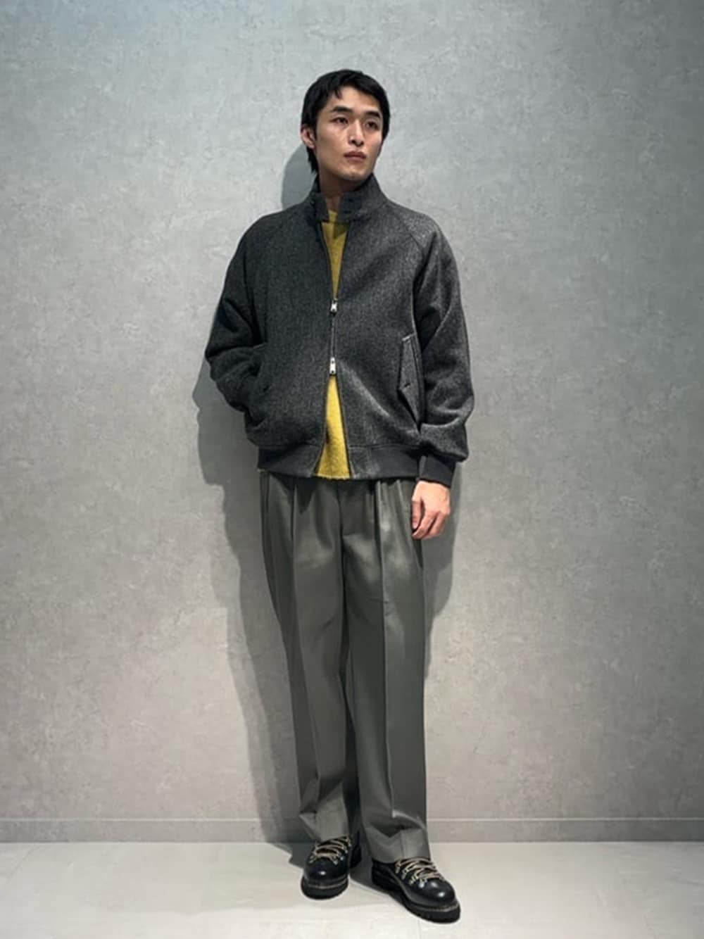 [別注バラクーダG9] ツイードで重厚感のある生地感は鮮やかなカラーや柔らかいニットなどの組み合わせがおすすめです。 商品詳細については使用アイテムをご確認ください。