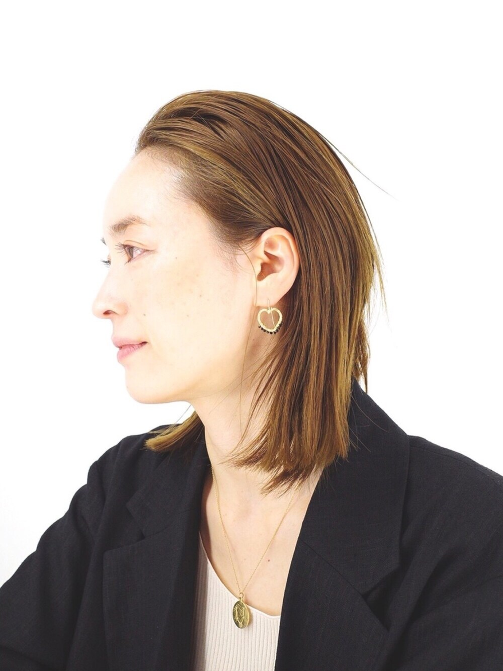 春コーデ💕ジャケットスタイルにポイントとなるジュエリーで差をつけて💎ハートモチーフですが甘くならない大人コーデに♫