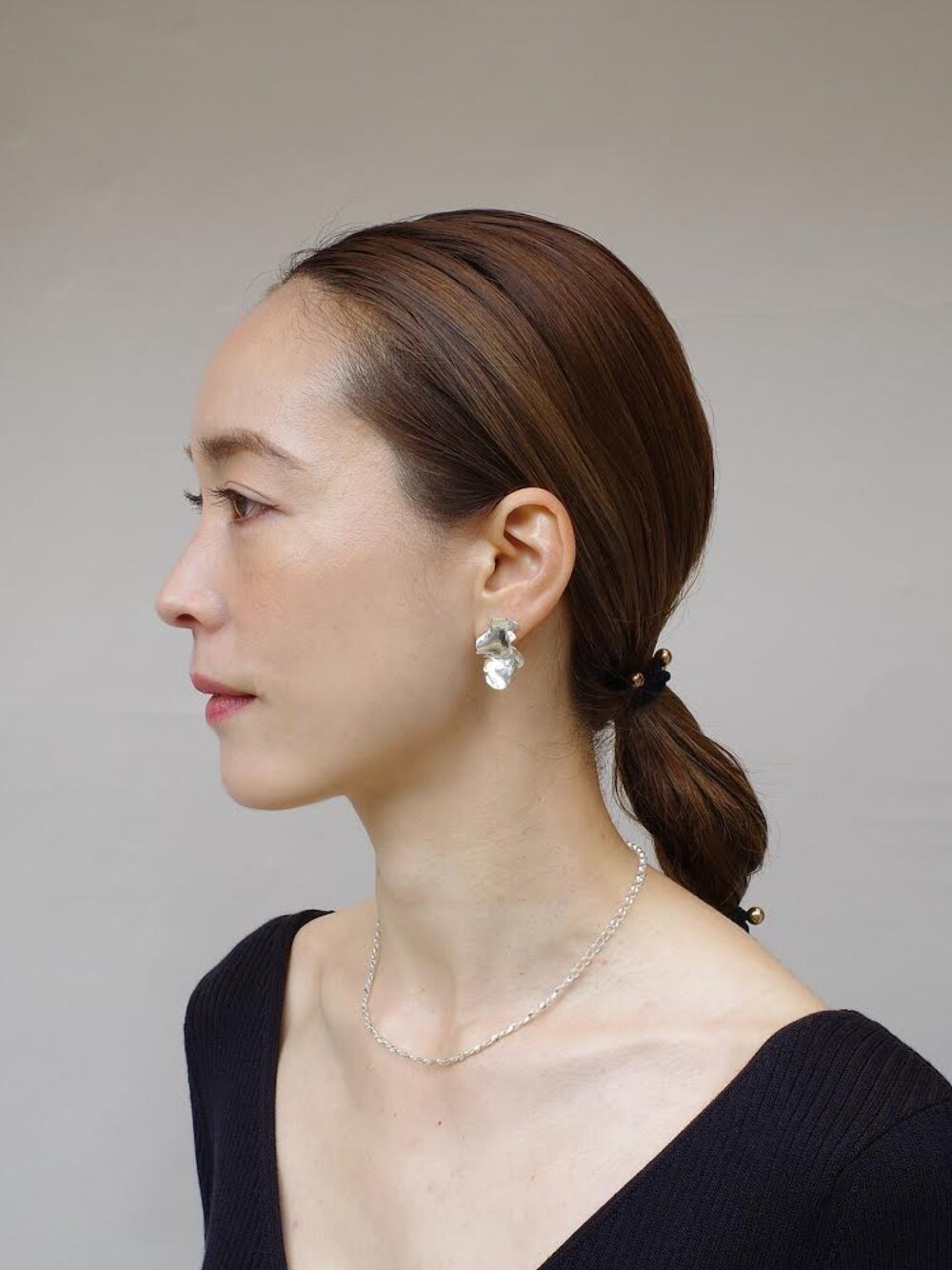 ニットワンピース×シルバーアクセサリー。