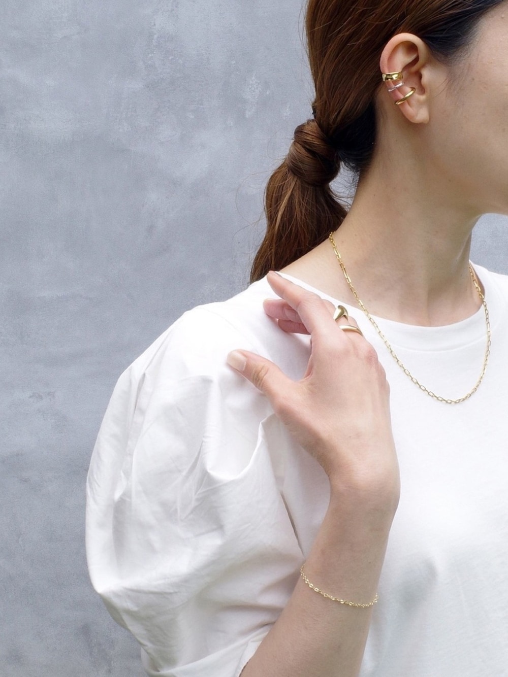 ISOLATION JEWELRYのブレスレット「【ISOLATION / アイソレーション】K10YG Petal Chain Bracelet / ペタルチェーンブレスレット」を使ったコーディネート