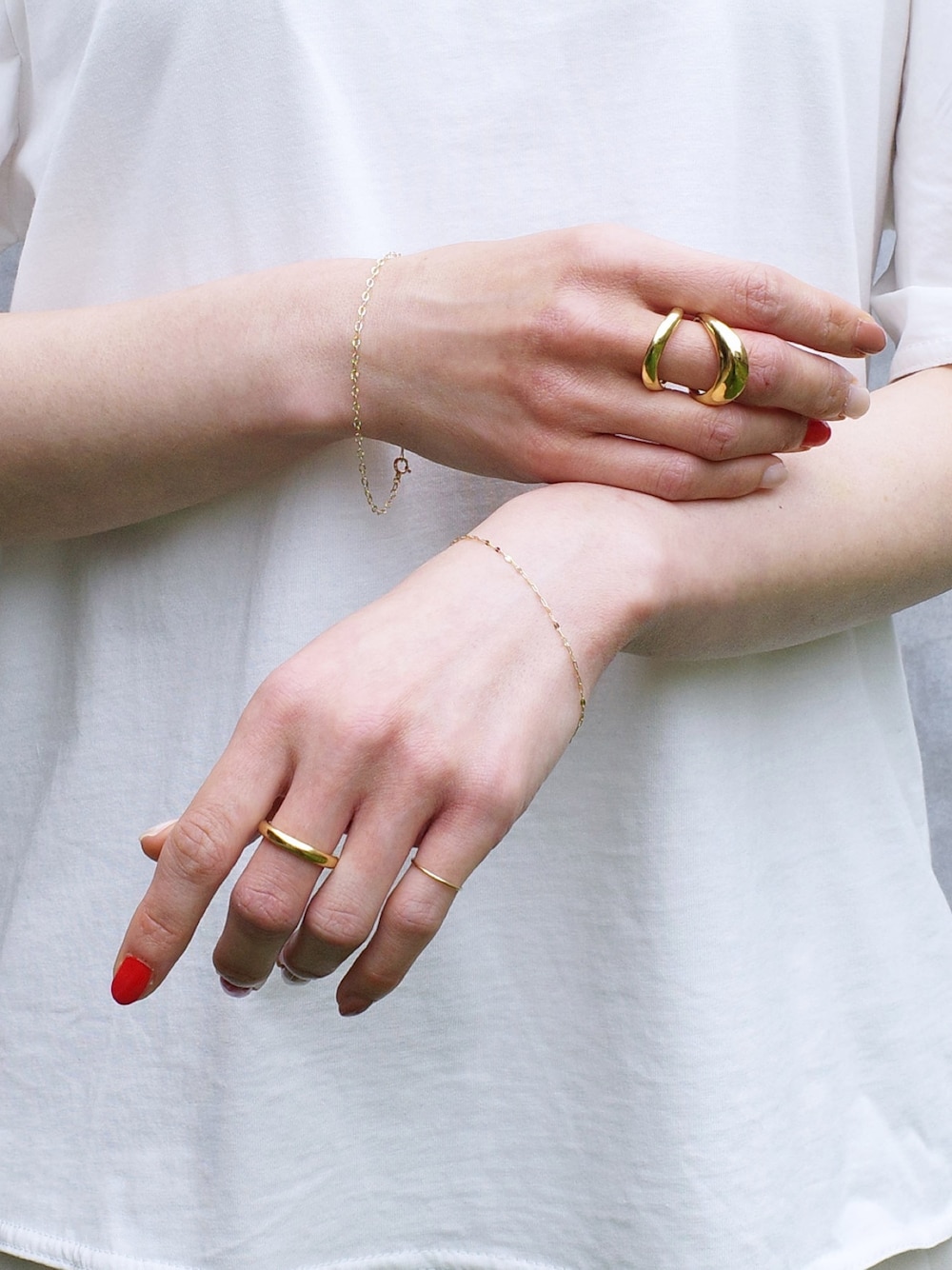 ootd... 手元コーデ。 両手にゴールドのチェーンブレスレットを合わせるのがポイント。 繊細なデザインなのでアクセントあるリングが映えます。 Instagram⇩ @isolation_jewelry
