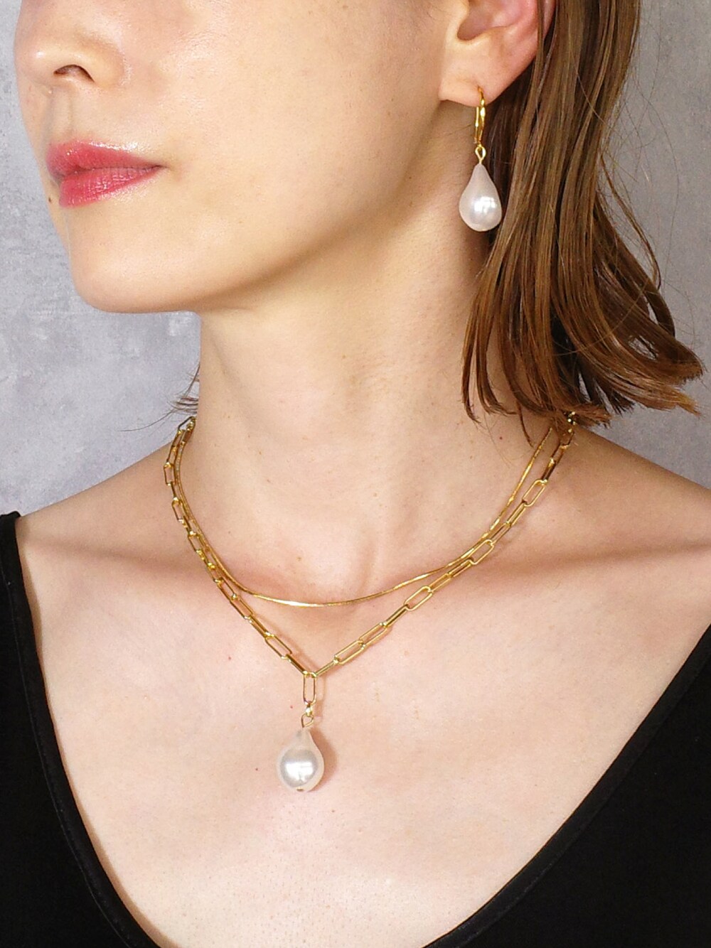 ootd... パールコーデ♡ 左右非対称のピアスにチェーンネックレスを合わせてみました。 Instagram⇩ @isolation_jewelry