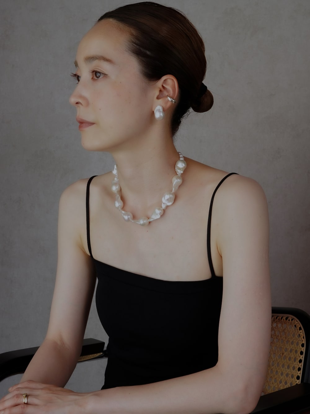 ISOLATION JEWELRYのネックレス「【ISOLATION / アイソレーション】 Baroque Pearl Necklace / 淡水バロックパール マンテルネックレス」を使ったコーディネート
