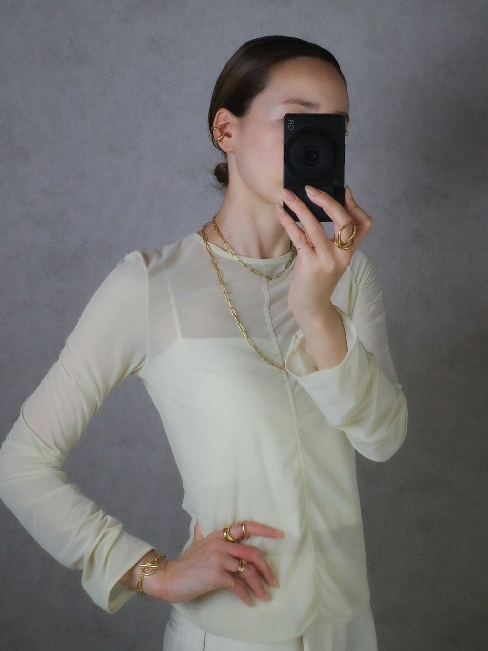 ISOLATION JEWELRYのネックレス「【ISOLATION / アイソレーション】Silver925 Rectangle Chain Long Necklace (K18gp) / ロングチェーン マンテルネックレス」を使ったコーディネート