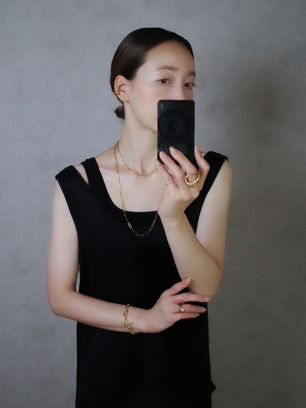 ISOLATION JEWELRYのネックレス「【ISOLATION / アイソレーション】Silver925 Rectangle Chain Long Necklace (K18gp) / ロングチェーン マンテルネックレス」を使ったコーディネート