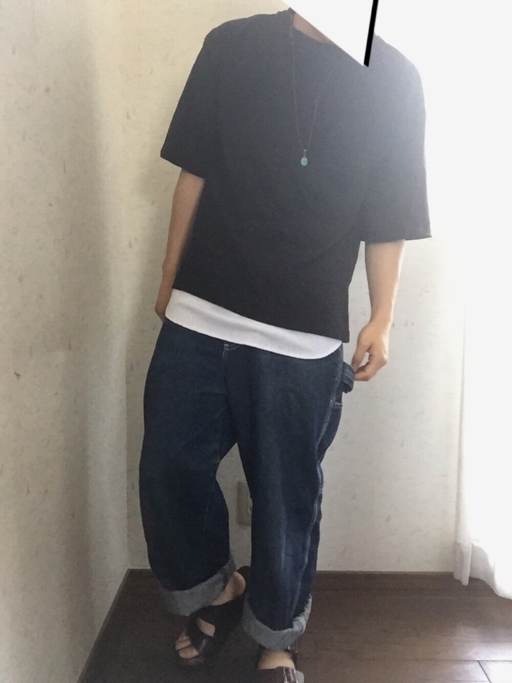 この前のコーデのビックTを黒にしたコーデ 最近本当に暑くて困る 外は暑くても室内は冷房で寒い