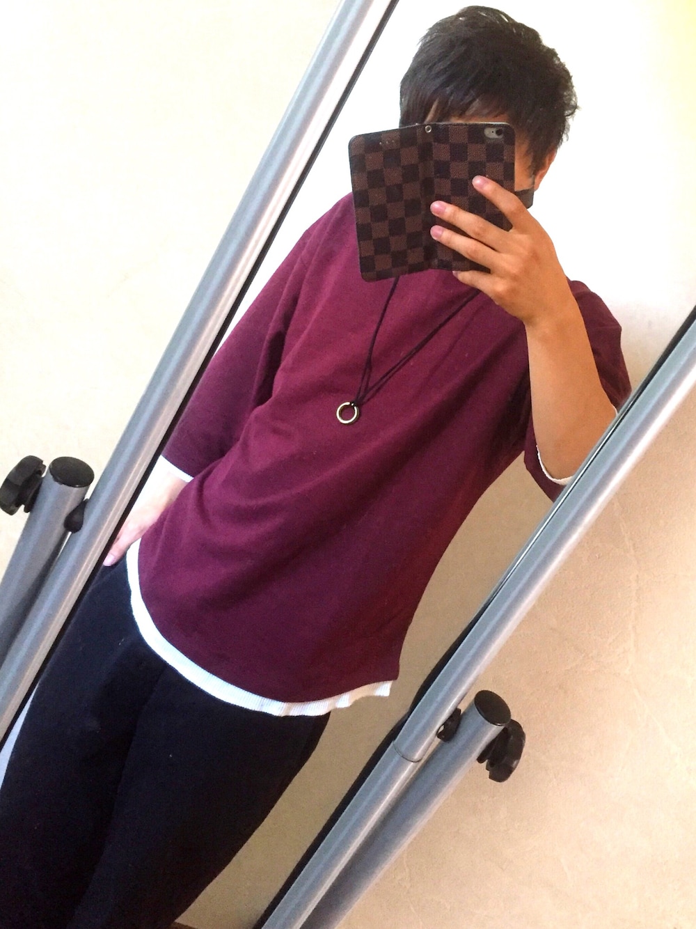 久しぶりの投稿 赤のビックTと黒のチノパン
