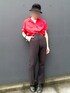 『ユニセックス・モードルードスタイル』。 黒基調に赤・白をアクセントに。 オーバーサイズ気味なアイテムな野暮ったくハードになり過ぎないように意識。タックインでモード要素を。男女問わず女性でも挑戦出来るスタリングのイメージで。 Shirts・・個人的にお気に入り『ZIP FIVE』。 程よいオープンカラーでsize感も幅広くあって、生地感、肌触りが好み。 Pants・・古いレディースのオーバーサイズなフレアスラックス。 Hat・・レディースサイズのスウェードバゲットハット。ヴィンテージショップにて。 Shoes・・クタクタ感が良いヴィンテージのポストマンシューズ。