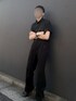 『Black ModeMilitary Style』 ・シチュエーション・・暑さが残りながらも、徐々に秋のへと移行しつつある今にふさわしいワントーン黒コーデ。 ちょっとした出かけにも。 ・Point・・全身黒のアイテムで。無骨っぽさがありつつも、スウェードの生地感やコーデュロイ素材などを取り入れ、秋らしさを。 ハイネックのカットソーをインし野暮ったくならないようにシンプルながらも大人っぽさやモード感を。 フィッシャーマンキャップ、メガネ👓やカラーサングラスを取り入れて抜け感、ストリート感も。 女子もメンズライクに決まるスタイル。