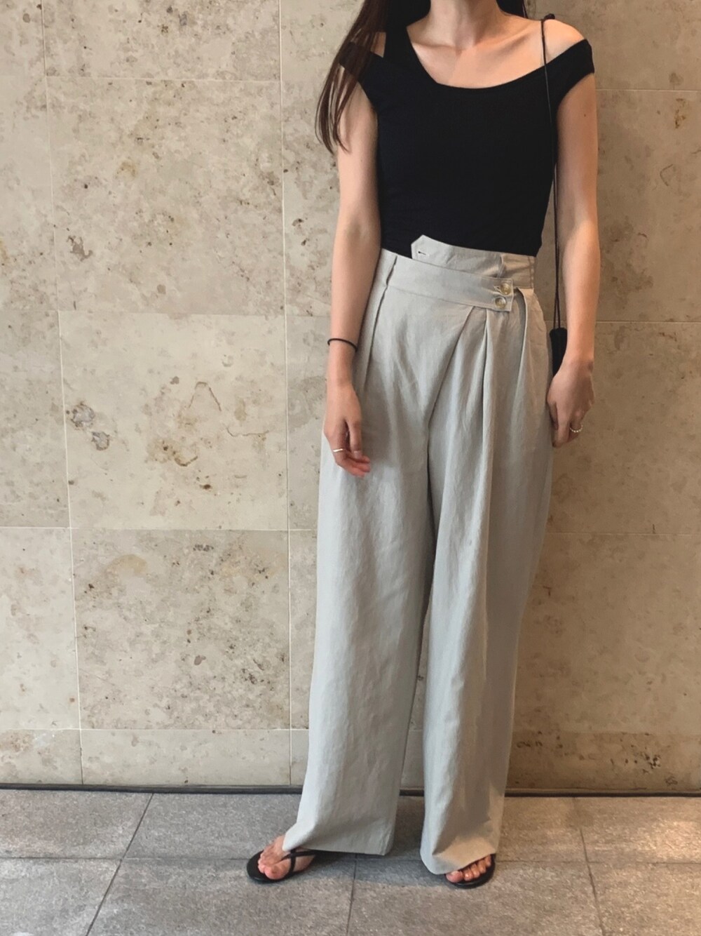 I-SOOK公式オンライン限定アイテム "アシンメトリーウエストデザインコットンリネンパンツ"