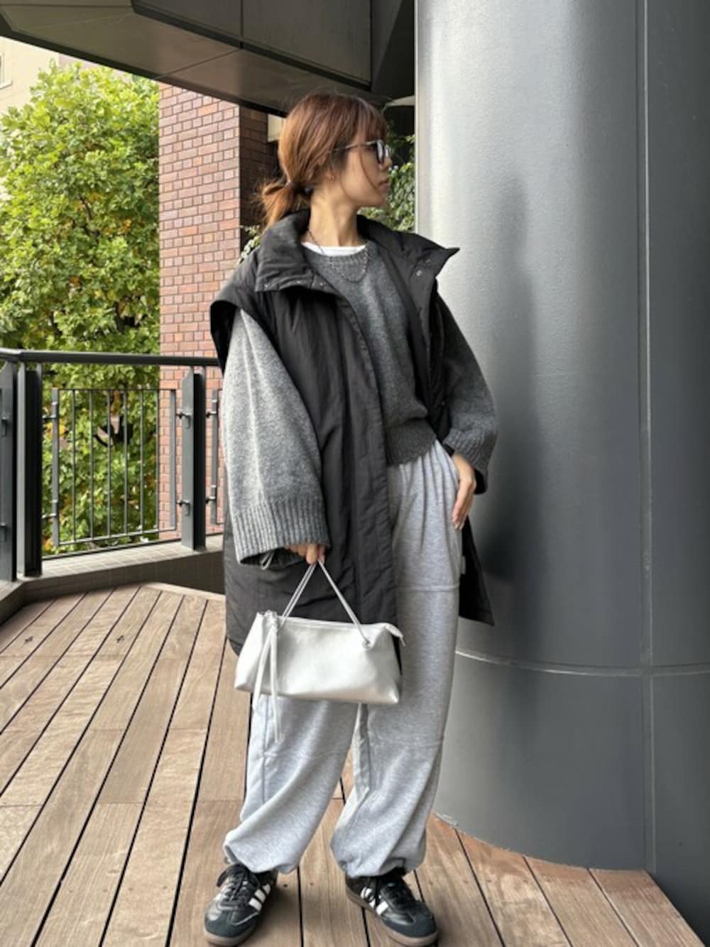 ブラックダウンベスト×スウェットパンツ ISOOKの2way中綿コート 袖が取り外せてダウンジャケットとしても着れるので おすすめです♡ 公式サイト https://i-sook.com/ 公式Instagram @isook_official Instagramスタッフアカウント @isook_staff