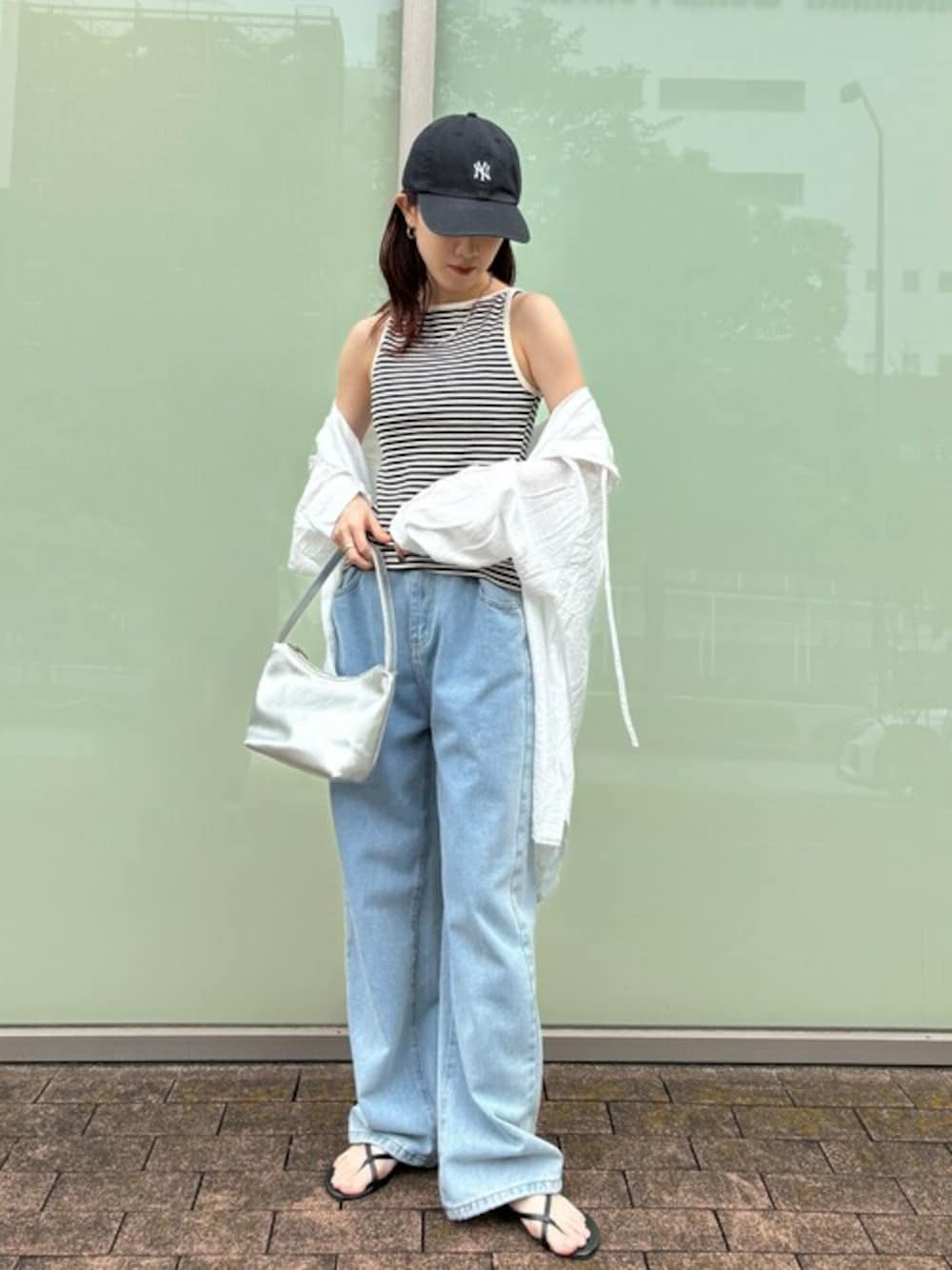ISOOK(I-SOOK)のタンクトップ「【ISOOK / アイスー】ボートネックボーダータンクトップ / リブタンクトップ リンガー ノースリーブ ボートネック スラッシュドネック ミドル丈 細ボーダー レッド ブラック 赤 黒 ZOZOTOWN限定」を使ったコーディネート