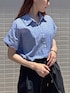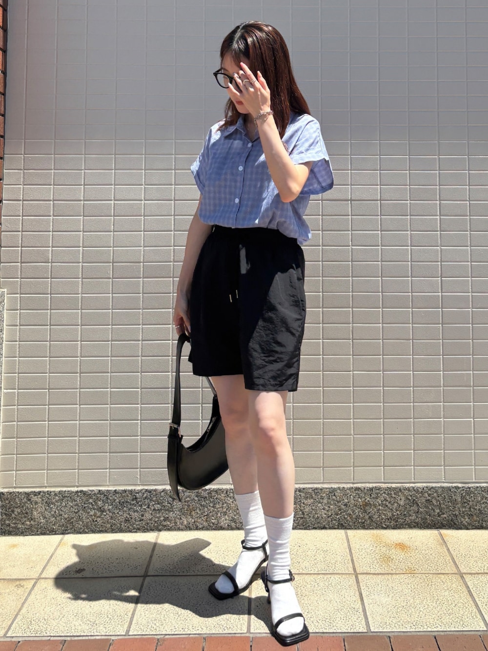 ISOOK(I-SOOK)のシャツ/ブラウス「【ISOOK / アイスー】シアーチェック半袖シャツ / チェックシャツ シアーシャツ シアートップス コンパクトシャツ 柄シャツ シースルー レギュラーカラー ショート丈 クロップド丈 短丈 半袖 チェック柄 ブルー アイボリー ネイビー 青 白 紺 ZOZOTOWN限定」を使ったコーディネート