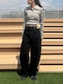 ISOOK(I-SOOK)のデニムパンツ「コクーンデニムパンツ / バレルパンツ ジーンズ ジーパン ハイウエスト ブラック ダークブラック ブルー 青 黒 ZOZOTOWN限定」を使ったコーディネート