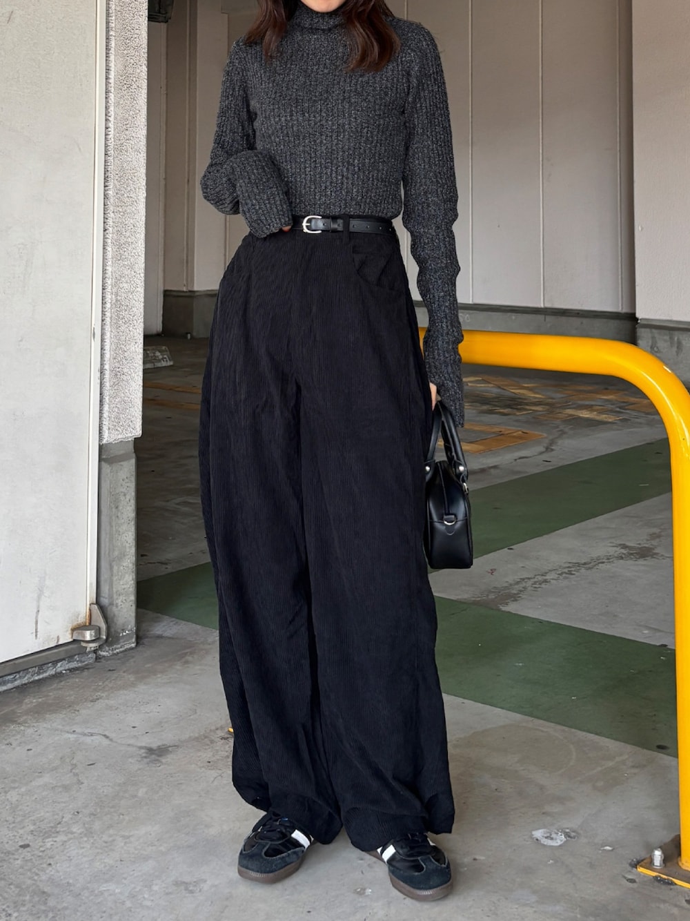 ISOOK(I-SOOK)のその他パンツ「【ISOOK / アイスー】2wayコーデュロイパンツ / ワイド コクーン バレルレッグ ハイウエスト ウエストゴム アイボリー ブラック ブラウン 白 黒 茶 無地 ZOZOTOWN限定」を使ったコーディネート