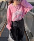 ISOOK(I-SOOK)のスウェット「【ISOOK / アイスー】カレッジロゴ風オーバーサイズスウェット / 長袖 クルーネック ラウンドネック カットソー レタリング ルーズ丈 ビッグシルエット 英字ロゴ 春服 春トップス グレー ピンク ZOZOTOWN限定」を使ったコーディネート