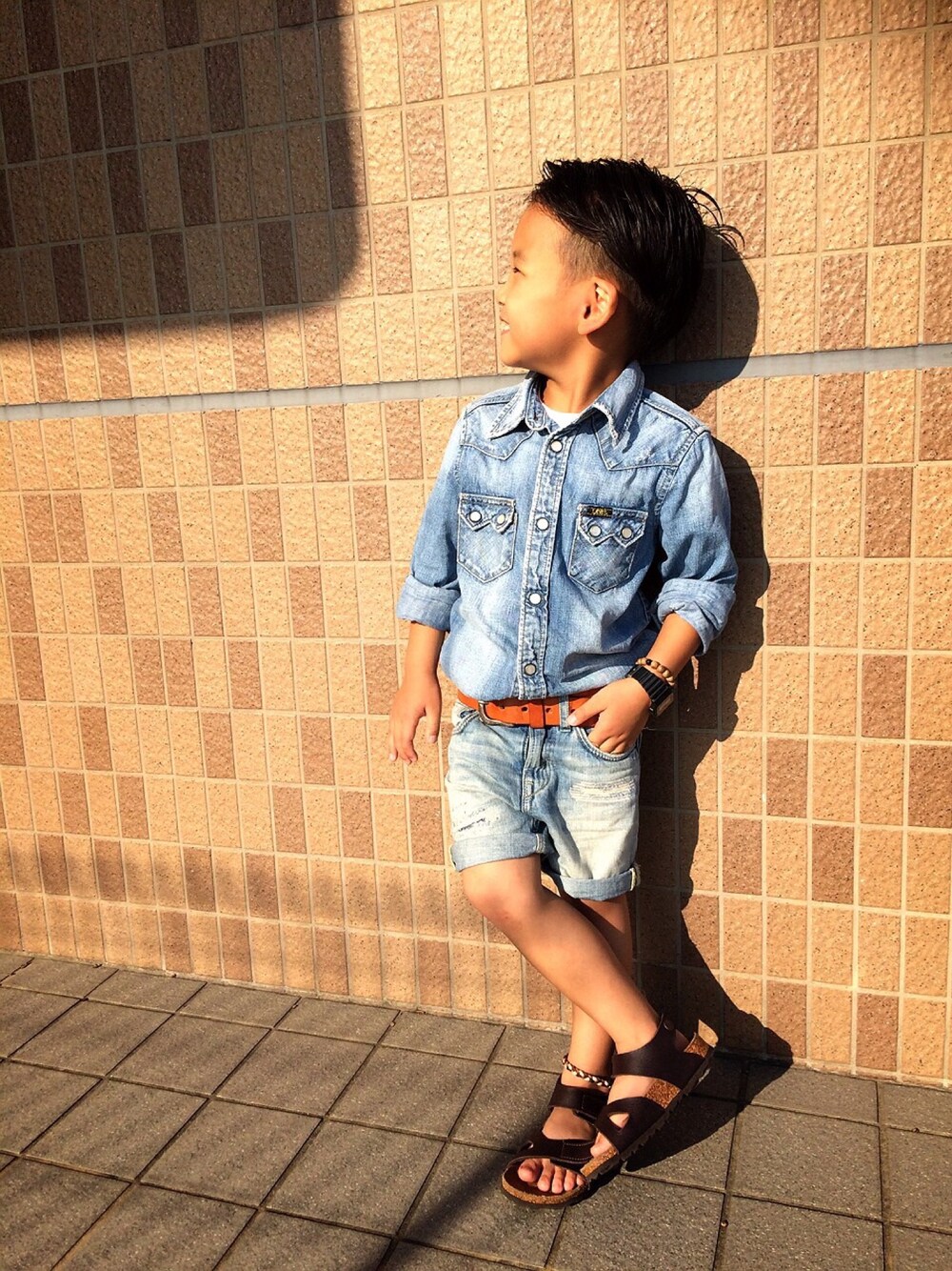 いつも見て下さり いいね♡セーブ、コメント いただきありがとうございます‼︎ 皆様のおかげで 100コーデ達成できました♡ 何てないデニ×デニ コーデですが🎵 西日がすごくて 影だらけ〜😱😱😱 これからも こんな親子をよろしく お願い致します🙏