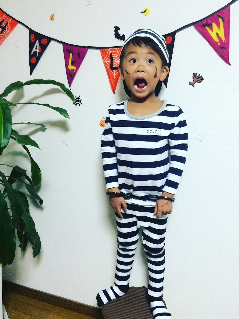 ブラック系のその他パンツ、ホワイト系のTシャツ/カットソーを着用したキッズの秋コーディネートの1枚目の写真