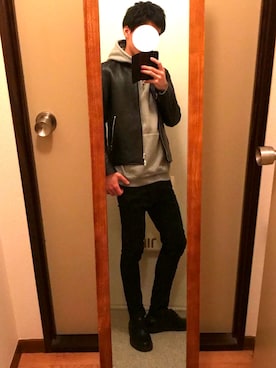 たまに全身レイジブルー LIDNMスキニー愛用 ライダースまじ良過ぎて、、、