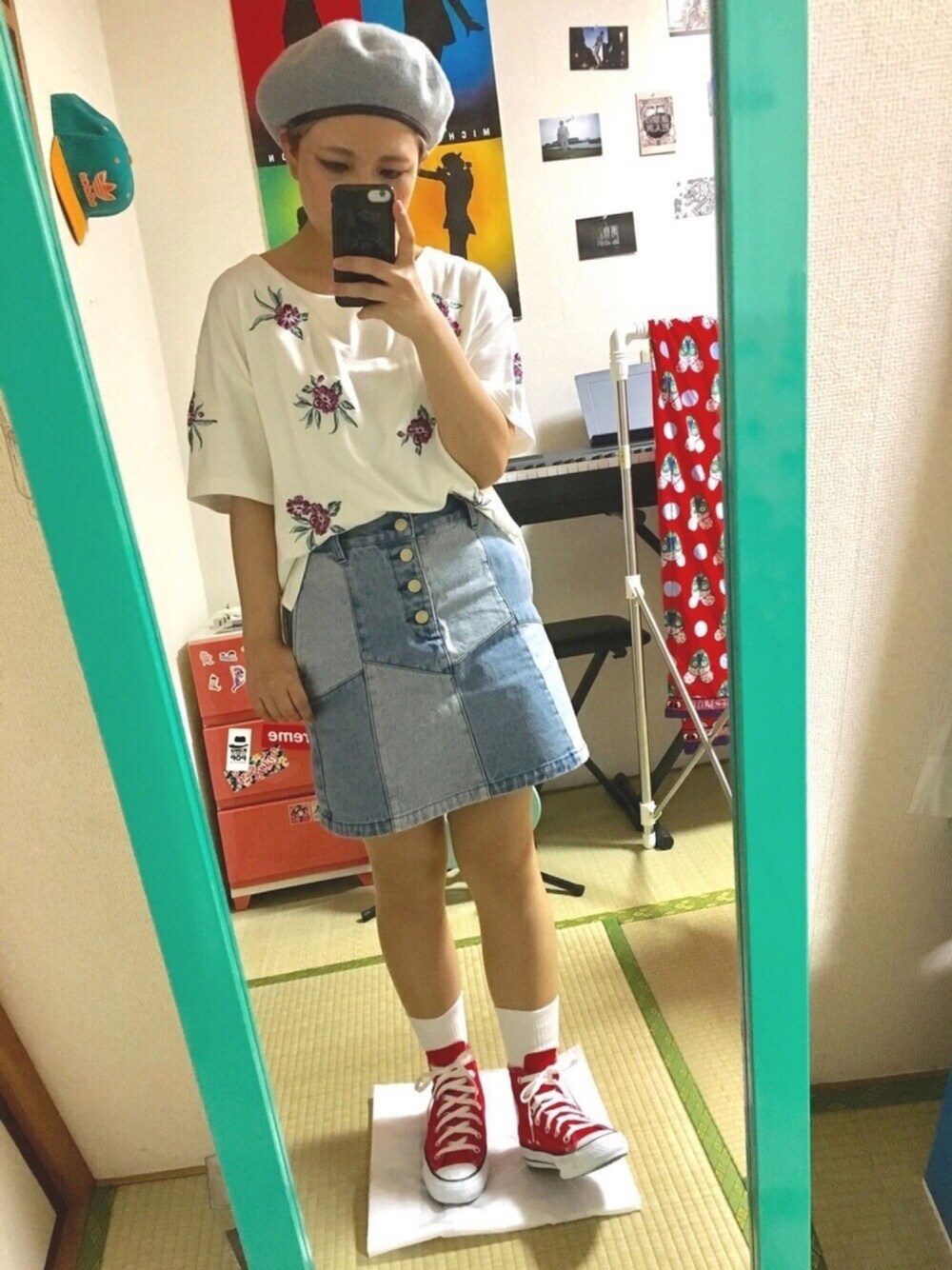 赤コンバースは絶対で、女子な格好がしたかった日。うーん、、むずかちい ベレー帽好きすぎかってね。私がベレー帽かぶってるときはだいたいが髪の毛セットしてないときです←