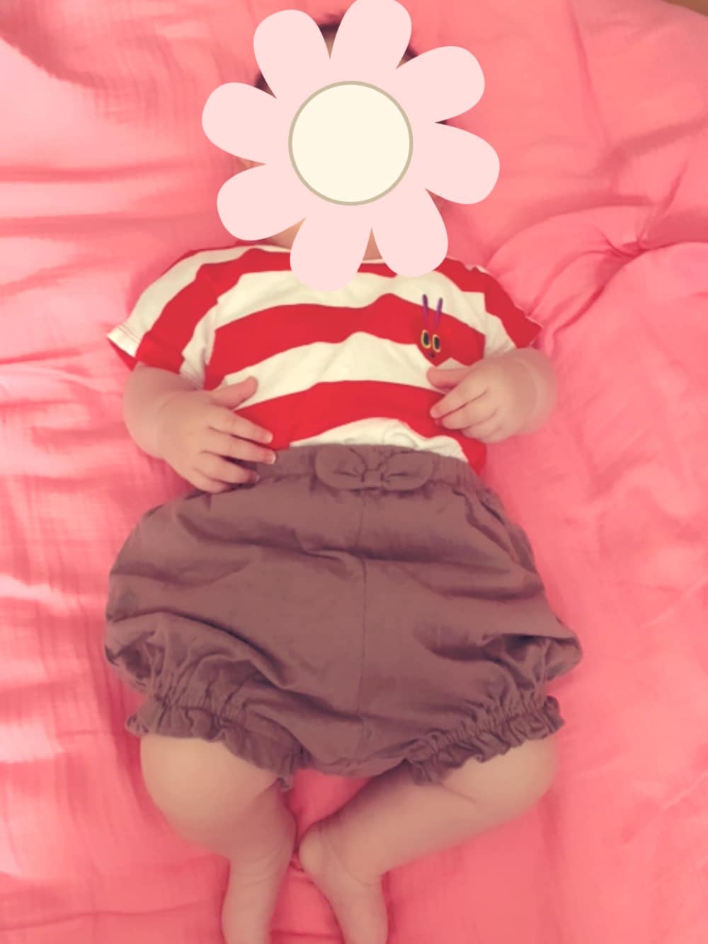 はらぺこあおむしが大好きな娘。 前々から欲しかったはらぺこのワンピースやっとゲット。 ただ、サイズが大きすぎるのでカモフラージュのためにパンツを履かせました。