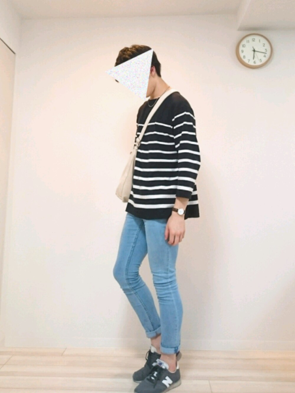 ボーダー×デニム この時期ならではのコーデをしてみました🙂 この色のパンツは夏しか履けないのでガンガン履いていきたい! LIDnMのネックレス使いやすすぎる👍 サイズ 【tops】L 【pants】31 【shoes】28.5