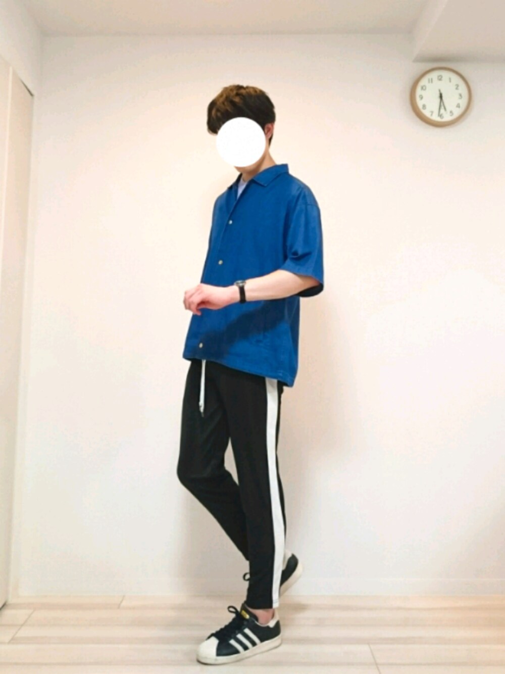 スポーツミックスコーデ! かなりプチプラかなと思います🙆 中のTシャツは白ではなくライラックで、ちょっとだけ「ちょびこ」を出してみました(笑) 皆さんはコーチシャツ開けるのと閉めるのどちらがいいと思いますか?? サイズ 【shirt】L 【T-shirt】L 【pants】L 【shoes】28.5