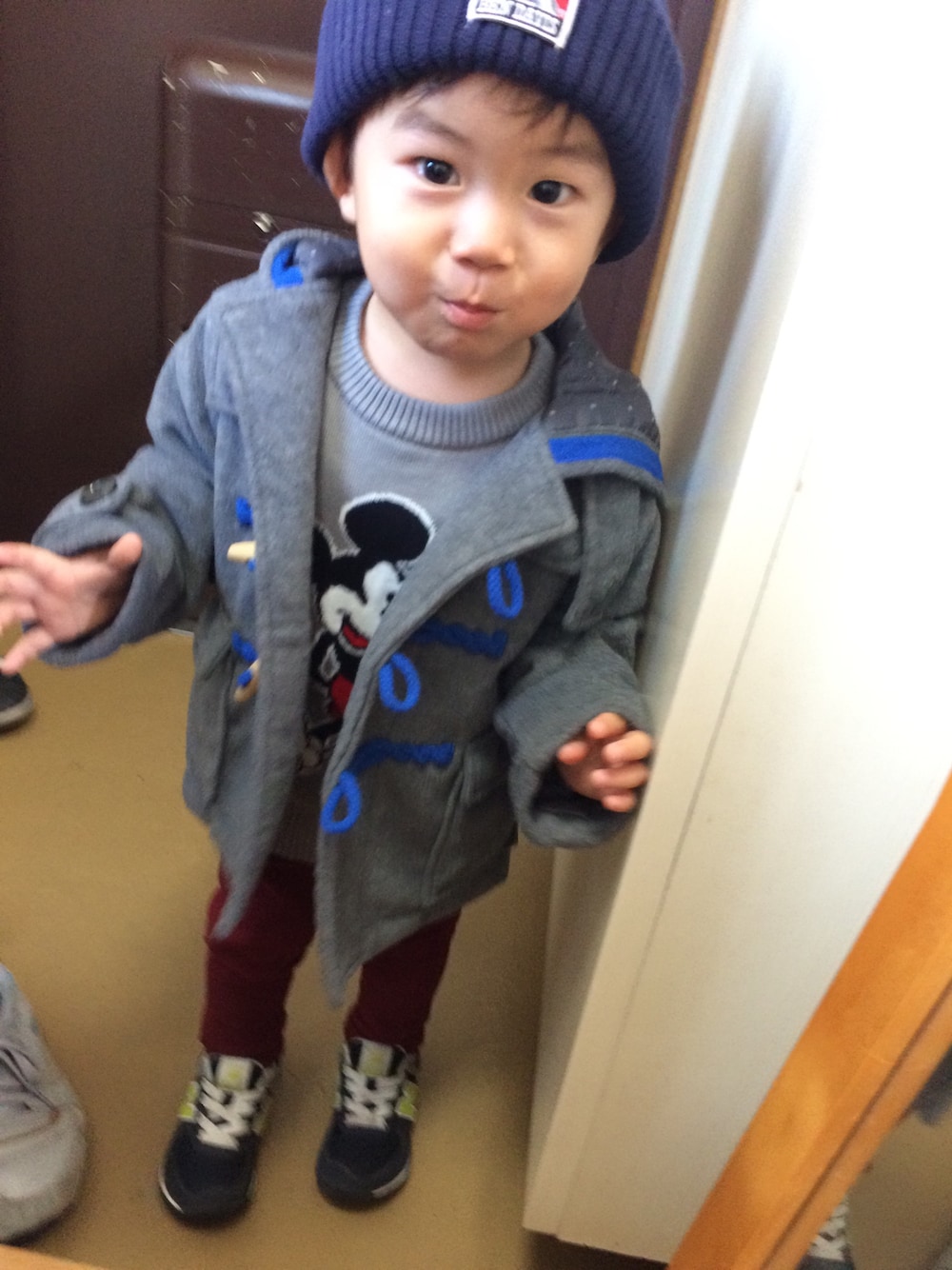 欲しかったミッキーのセーター♡赤はもうサイズなかったけど灰色ゲット❗️ クリスマスプレゼントで妹に買わせた。笑 ついでにボルドーのパンツ👖は私とお揃いで着れるし購入♡ アウターは去年のセールで買ったけど今年も同じの売ってるみたいでラッキー😁 来年は今着てるアウター小さくなってるやろしまた買い直しだな😩