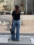 【トップス】 シンプルですが、 透け感と長めのリブで止まる立体的なデザインが着映えるニットです。 同素材のカーディガン合わせも素敵です◎ 【パンツ】普段サイズ38/着用サイズ38 ヴィンテージライクな加工が魅力のデニムです。 切り替えが内側に入ってるのと、ウエスト位置が高いのでかなりスタイルアップして見えます。