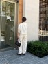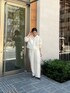 ブラウス:軽やかな素材で、涼しげな印象。デザイン性があり、1枚で華やかに。 パンツ:リラックス感のあるシルエット。ウエストゴムで履き心地も快適。