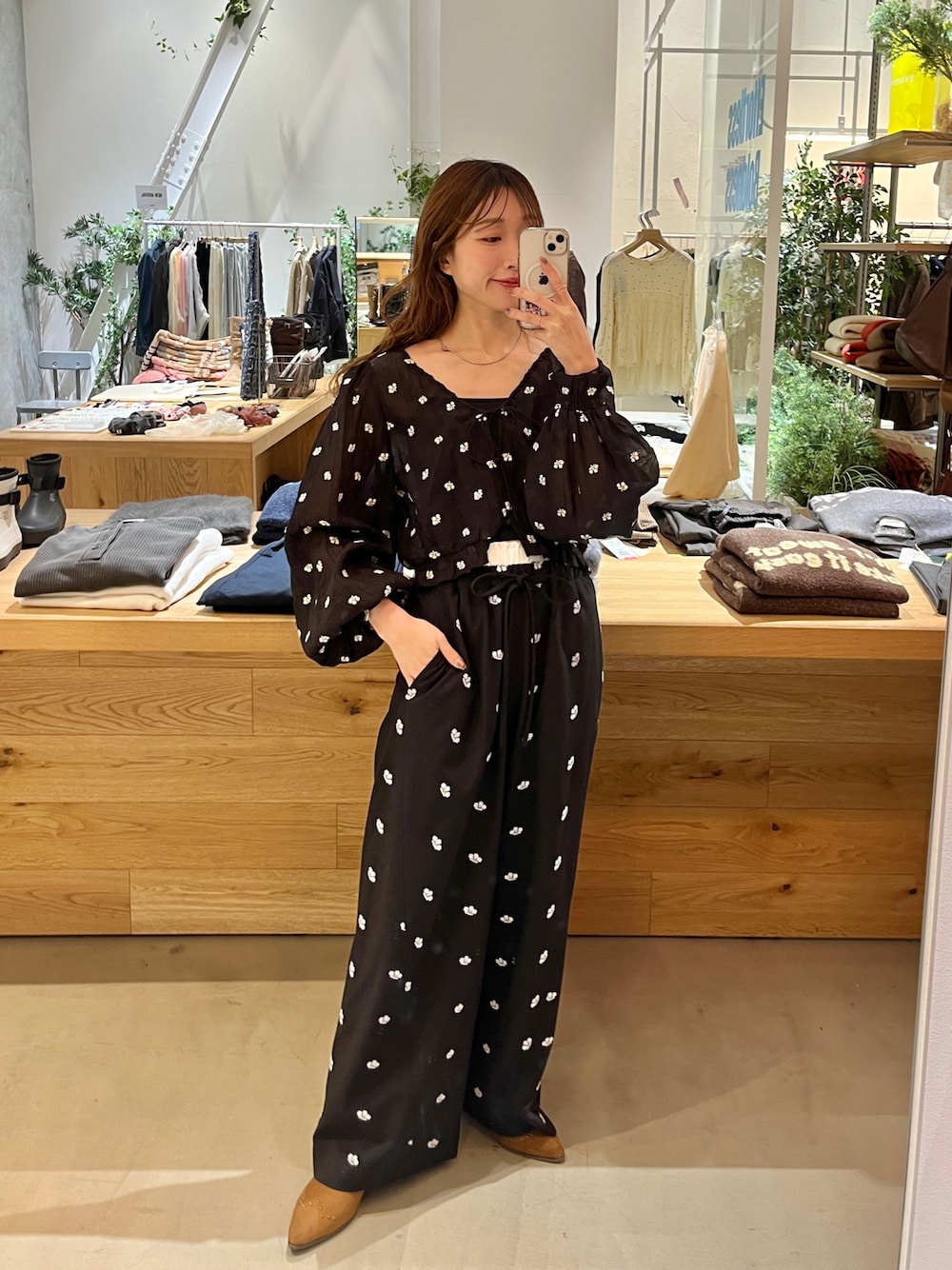 itaba(Kastane 金沢フォーラス店)のその他パンツ「【新色追加/2サイズ展開/低身長サイズ】フラワーステッチワイドパンツ」を使ったコーディネート