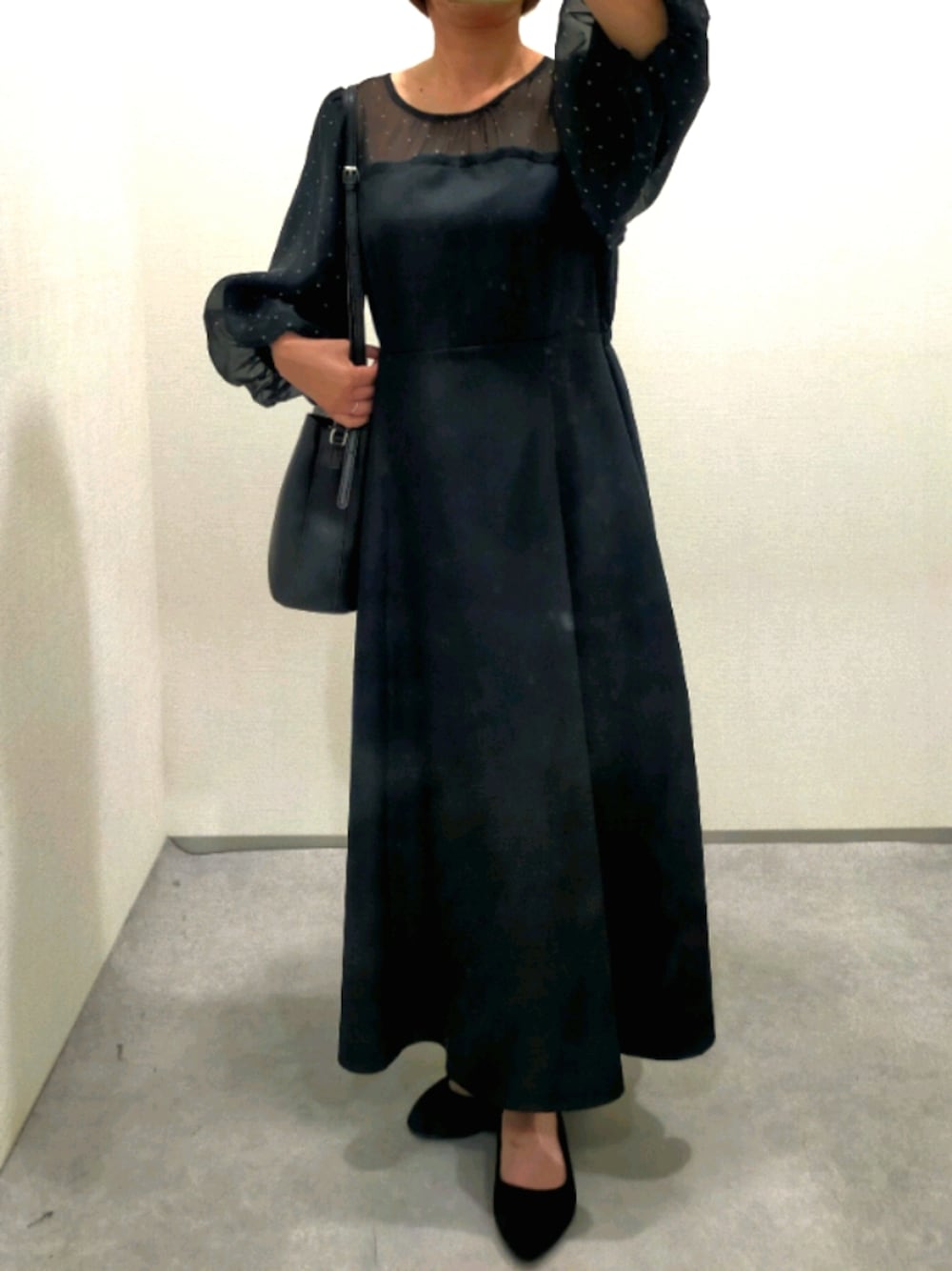 ~おでかけコーデのご提案です~ 【サイズ感】 大きい胸専用サイズなのでバスト部分にゆとりがあり楽に着用できました。 私の身長では長めで足首がきれいに見える丈でした。 【コーディネート&おすすめポイント】 シンプルなブラックとのバッグとパンプスでコーディネートしてみました。 肩の部分は透け感のある素材、袖部分は透け感のある素材に裏地がついていて立体的なデザインです。きれいめにもフォーマルっぽくも着られる、使い勝手のいいワンピースだと思います。