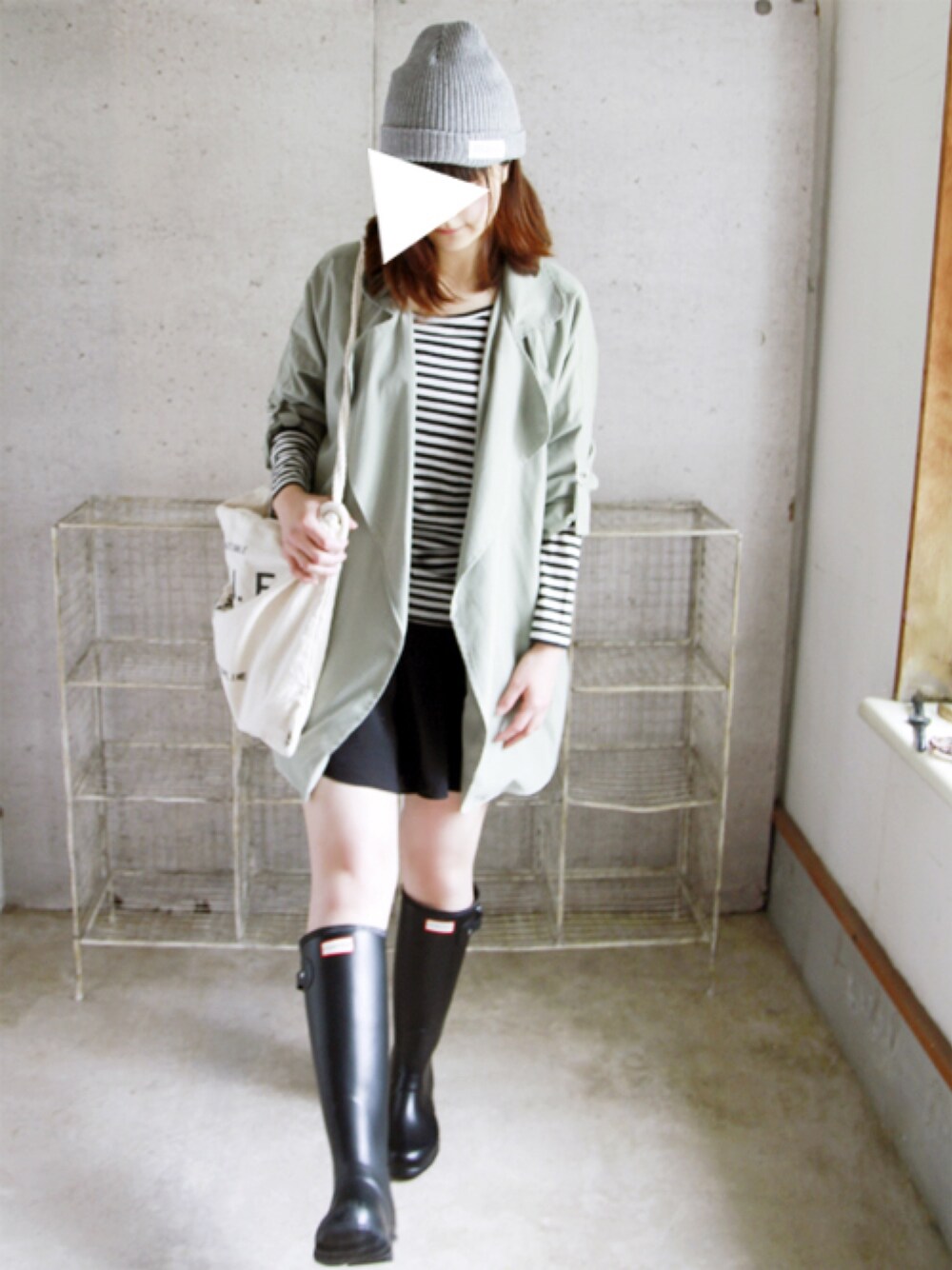 トレンド服のイタフラのレインシューズ「HUNTER / WOMENS ORIGINAL TALL」を使ったコーディネート