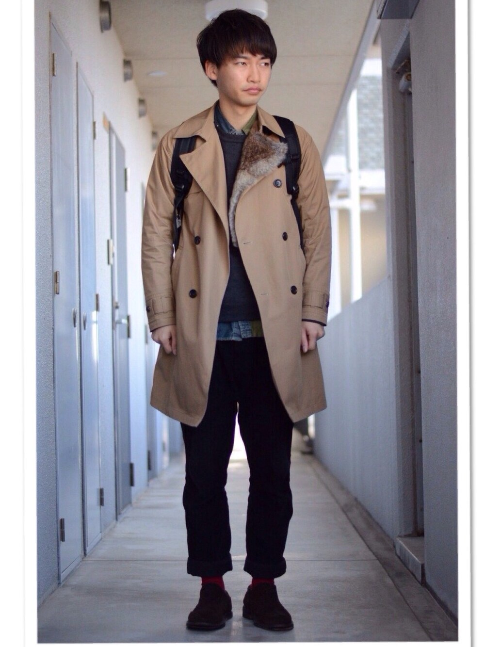 ITARUのトレンチコート「Fur Collar Trench Coat」を使ったコーディネート