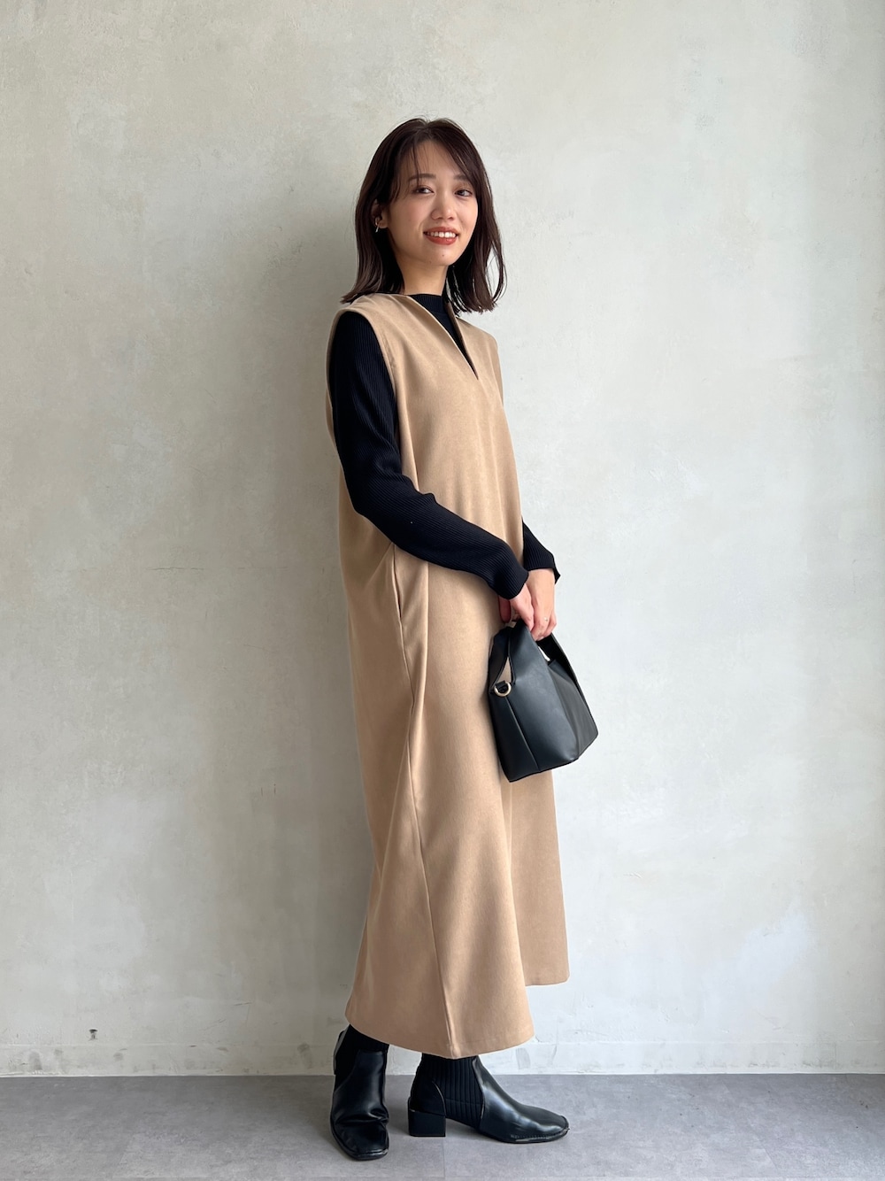 いたみかなこ(Chez toi)のワンピース「ニット×キーネックワンピース」を使ったコーディネート