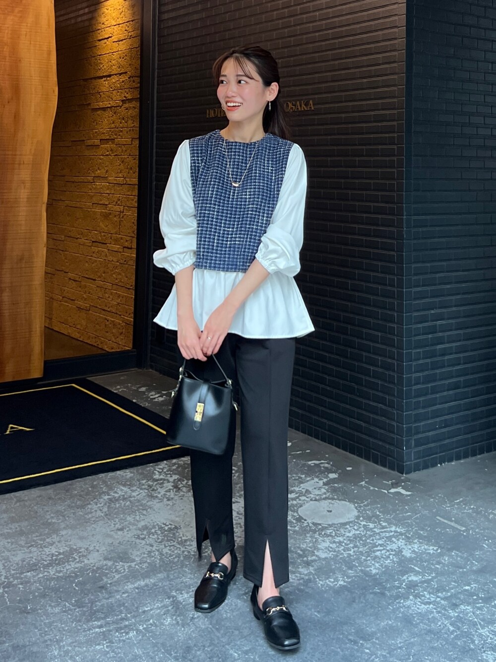 いたみかなこ(Chez toi)のシャツ/ブラウス「ツイード布帛切替ペプラムブラウス」を使ったコーディネート