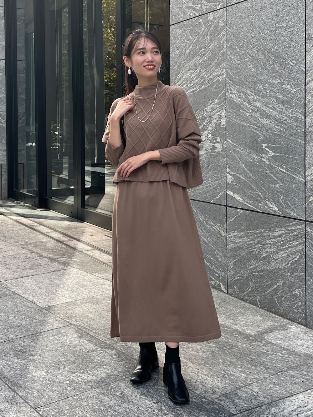 いたみかなこ(Chez toi)のワンピース「ケーブルプルオーバー×ニットワンピース」を使ったコーディネート