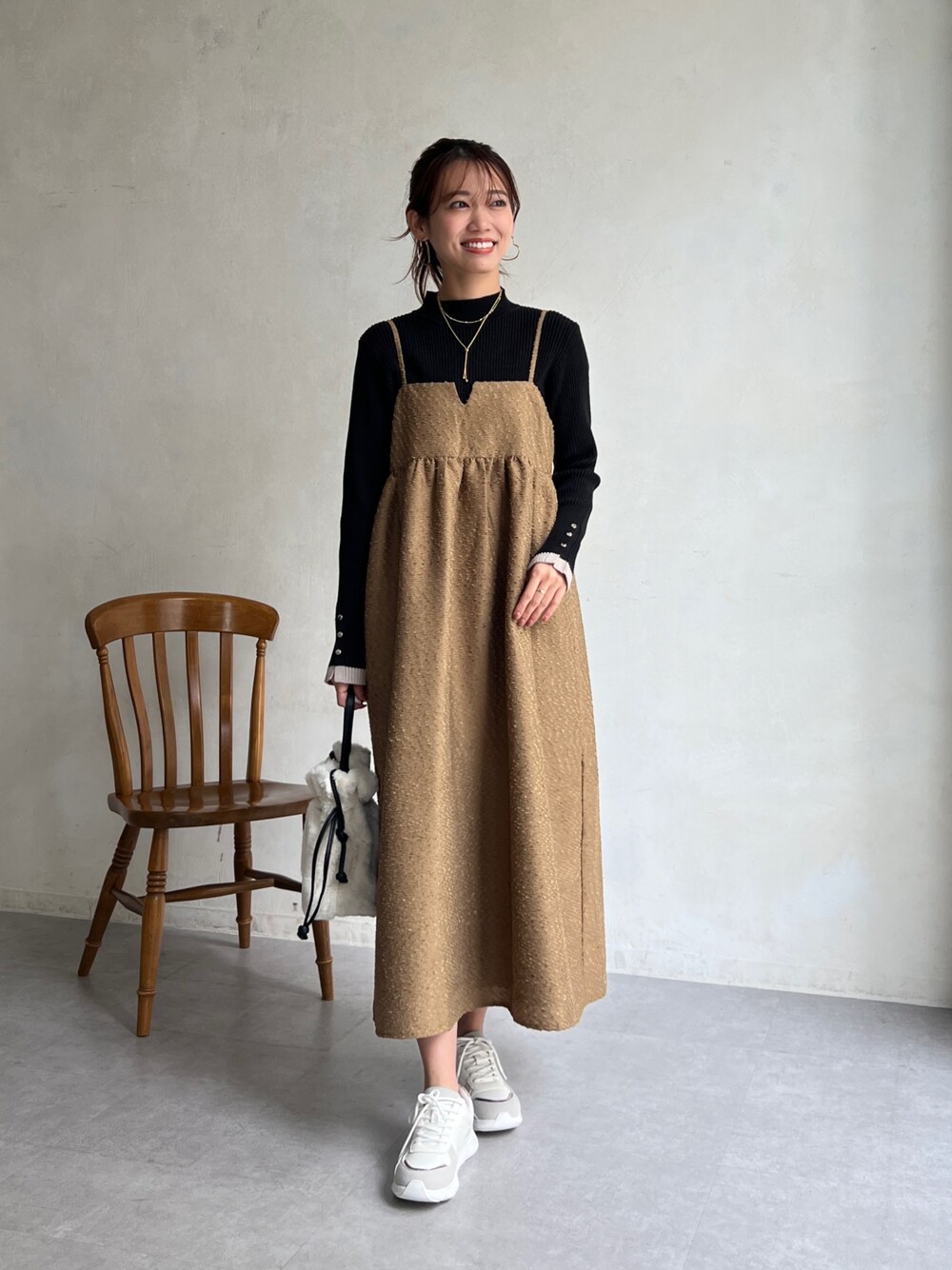 いたみかなこ(Chez toi)のワンピース「ジャガードキャミワンピース」を使ったコーディネート
