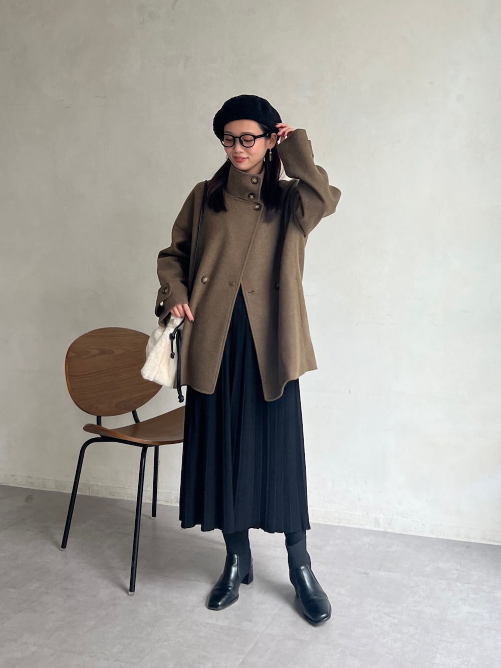 いたみかなこ(Chez toi)のその他アウター「メルトンスタンドカラーミドル丈ジャケット」を使ったコーディネート