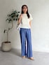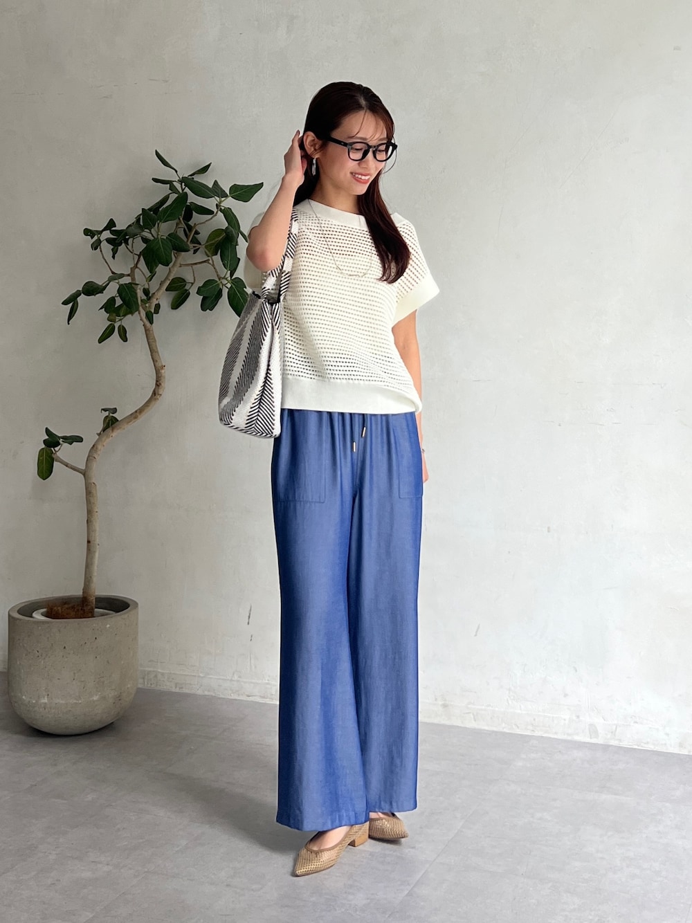 骨格ウェーブが インしなくてきても スタイル良く見えるコーデです✨ ○ニット フリーサイズでゆったりとしたサイズ感です。 トレンドのメッシュ素材のニットです。 フレンチスリーブで大人女子にも嬉しい袖丈です。 柔らかく楽に着用できます。 裾のリブで着丈も調節しやすいアイテムです。 ○パンツ フリーサイズでウエストは総ゴムとウエスト紐で楽に着用できました。 161cmでくるぶしぐらいの着丈でした。 とても薄く柔らかいデニム生地で夏でも涼しく着用できます◎ instagram@itamiii_k