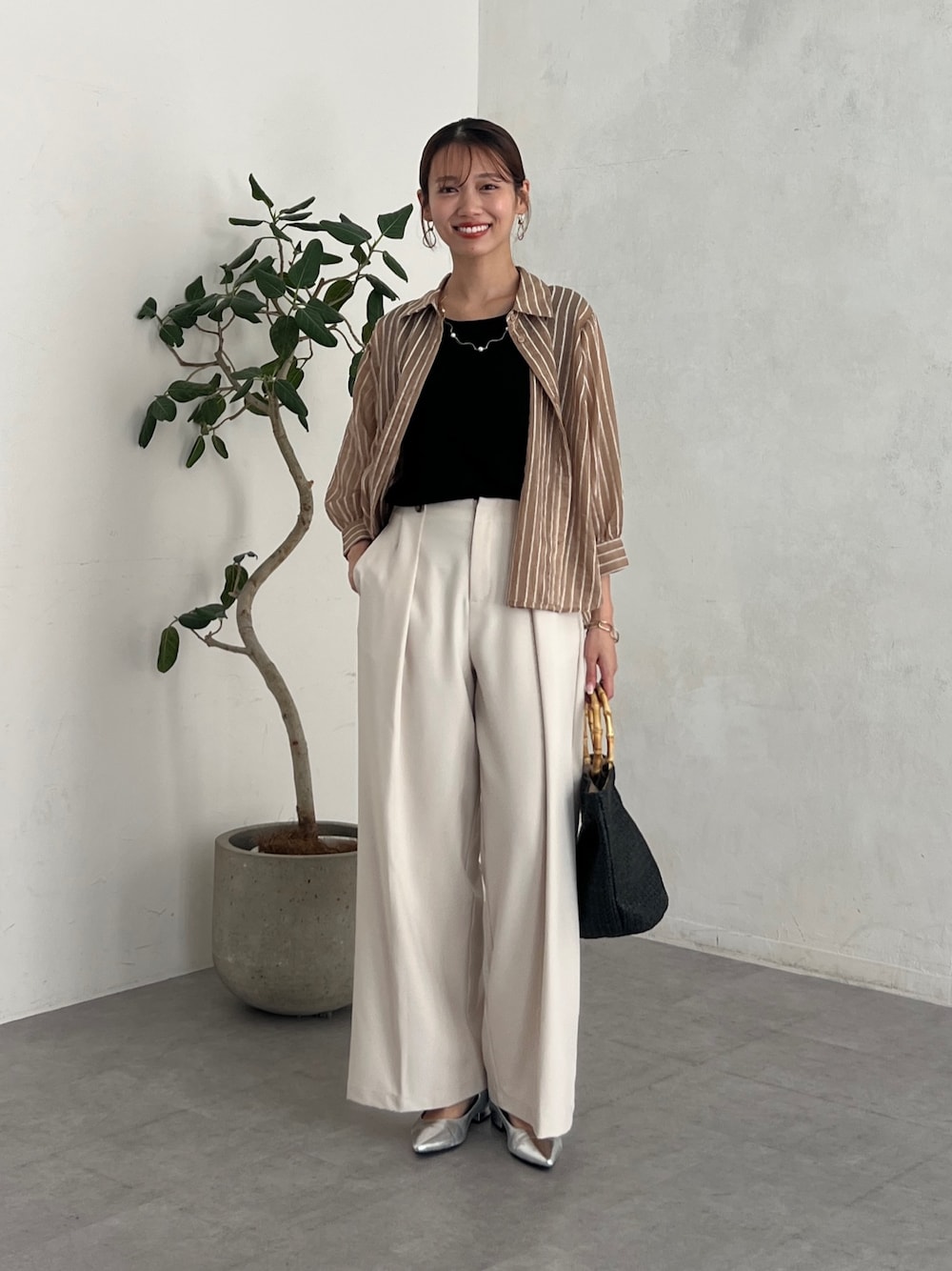 いたみかなこ(Chez toi)のシャツ/ブラウス「ラメストライプシャツ」を使ったコーディネート