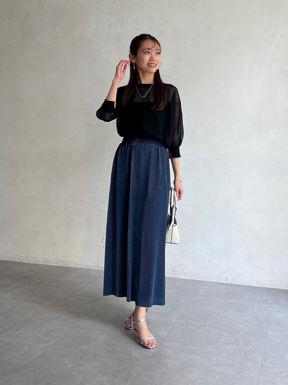 いたみかなこ(Chez toi)のカーディガン/ボレロ「前後2WAYシアーニットカーデ」を使ったコーディネート