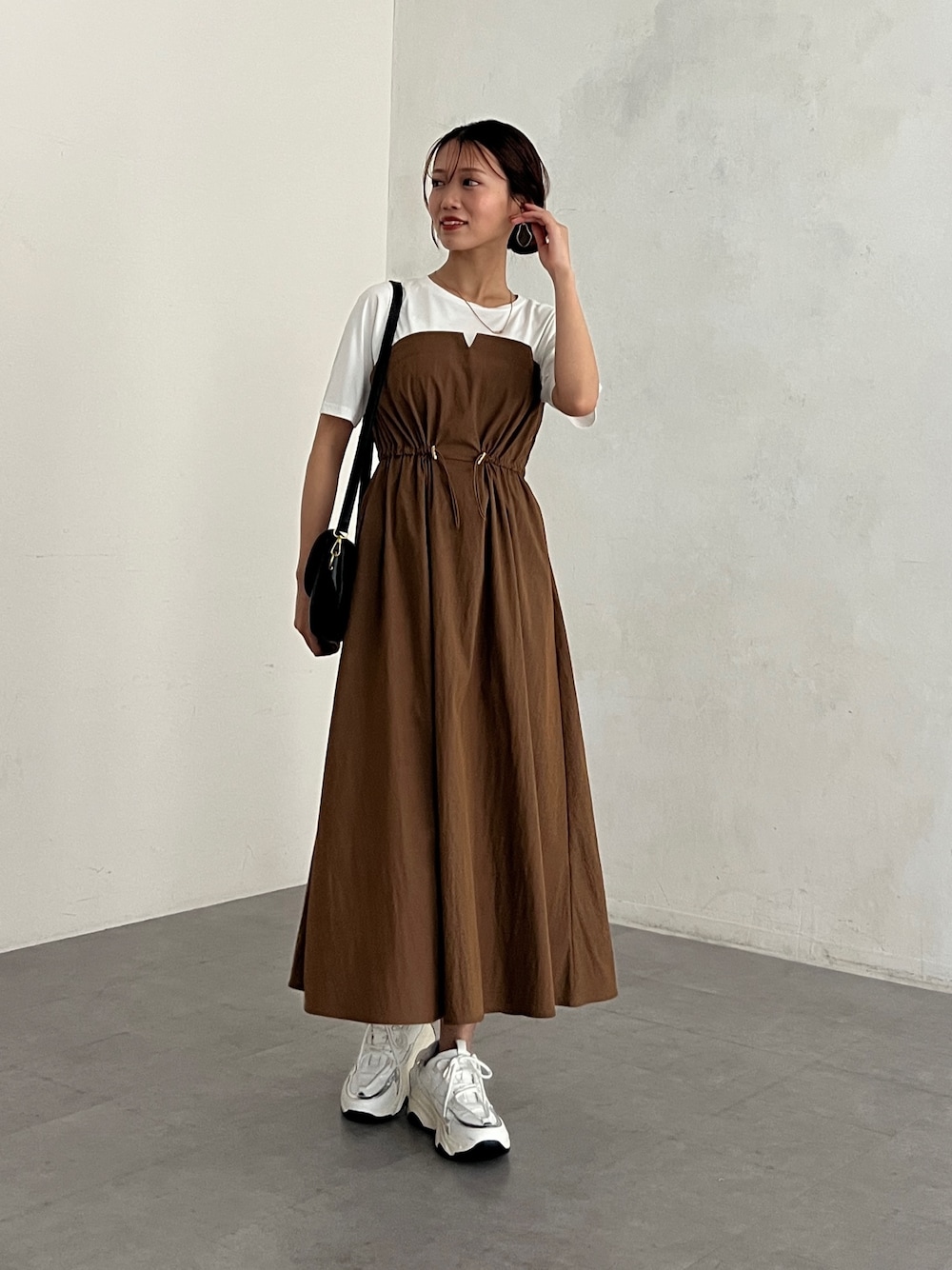 いたみかなこ(Chez toi)のワンピース「ビスチェ見えドッキングワンピース」を使ったコーディネート