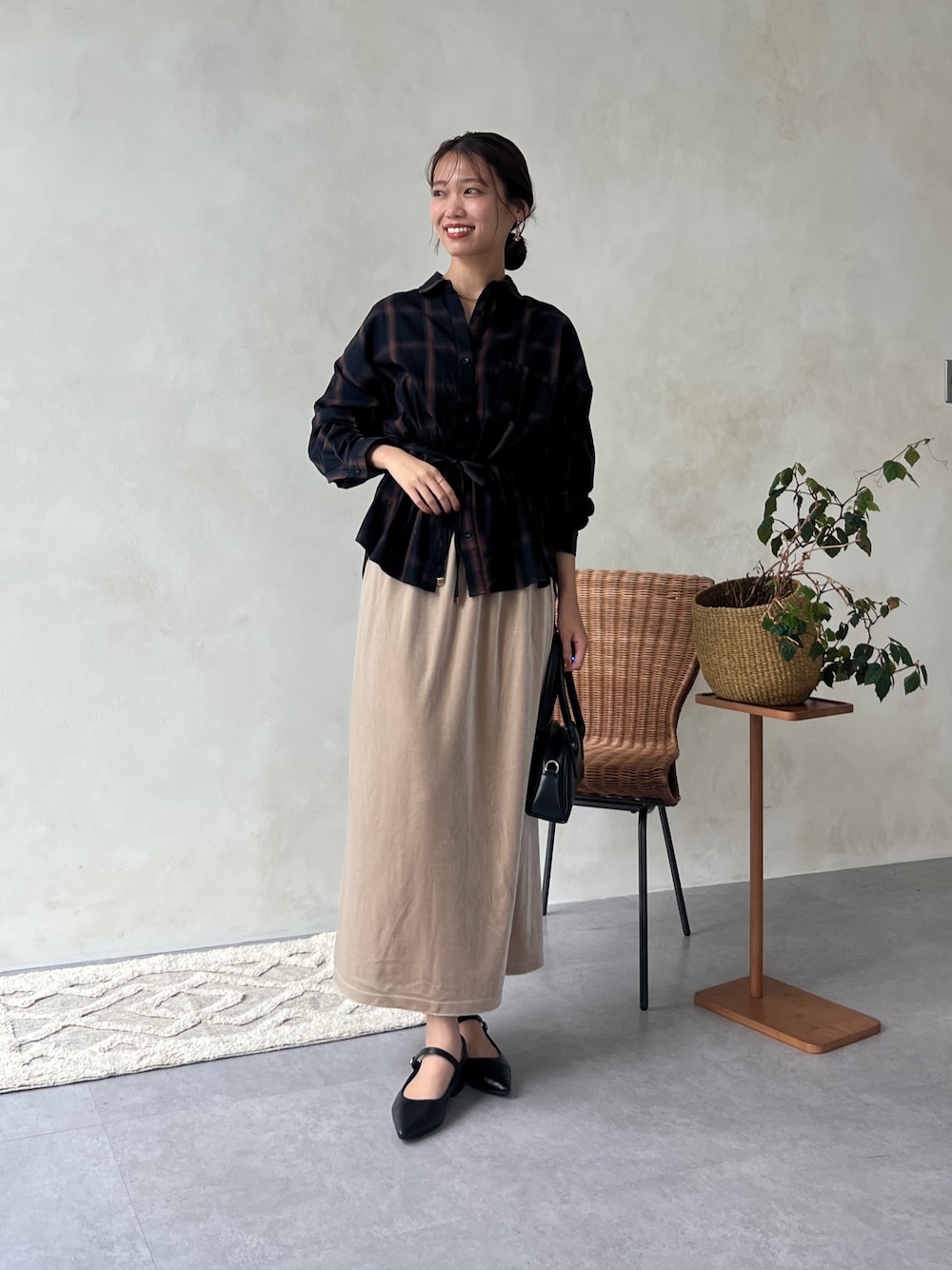 様々なシルエットで着回せるチェックシャツを 今回はペプラムデザインで着てみました! ベロアのナロースカートと合わせることで より上品な着こなしにしました✨ ○シャツ フリーサイズで身幅はゆったりとしています。 柔らかい生地で体に馴染みやすく、とても楽に着用できました。 ウエストにリボンが付いていて、前で結ぶとペプラムデザイン、後ろで結んでも可愛いのがポイントです◎ 骨格ウェーブでシャツが苦手な方にも、柔らかく可愛いデザインで着こなしやすいのでおすすめです♡ ○スカート フリーサイズでゆったりとしたサイズ感です。 ウエストは総ゴムでとても楽に着用できます。 ベロア素材が高見えしてくれるアイテムです◎ 全体的に伸縮性があり、とても楽に着用できるアイテムです。 161cmでくるぶしがしっかりと見える着丈でした。 instagram@itamiii_k