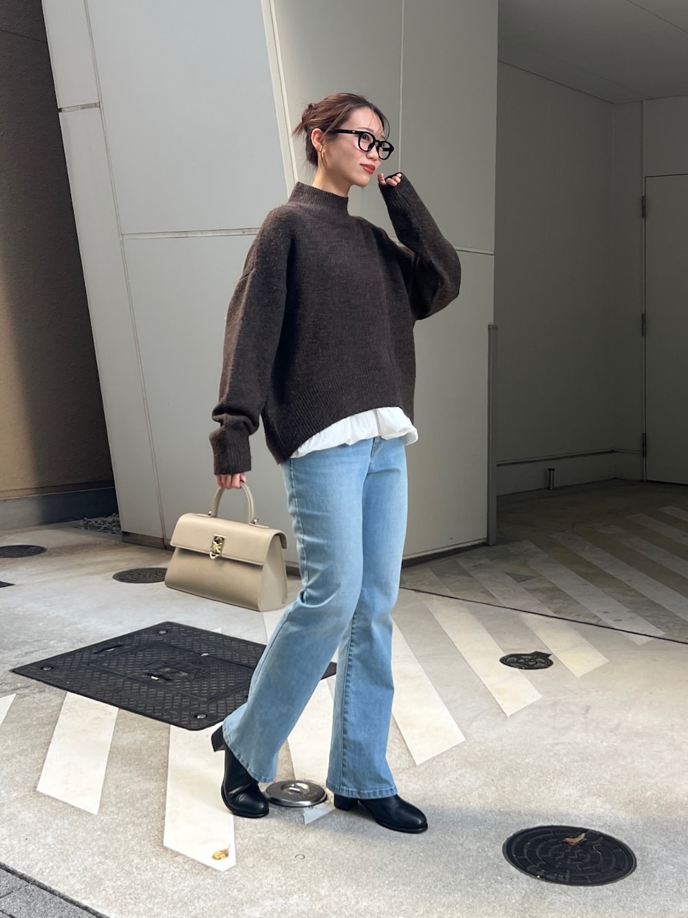 今年のトレンドカラーのブラウンのニットを使った 大人可愛いデニムコーデです♡ Instagram@itamiii_k TikTok@itamiii_k
