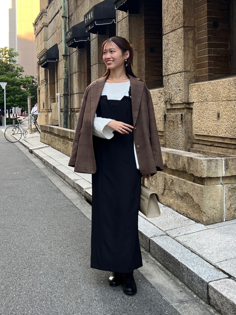 今年のトレンドのブラウンのジャケットを使って 大人可愛いコーデにしてみました♡ instagram@itamiii_k TikTok@itamiii_k