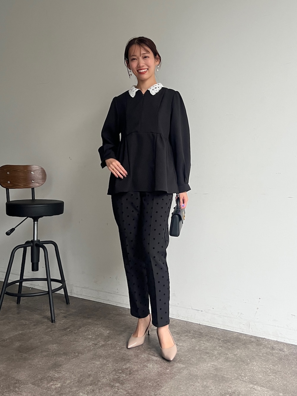 いたみかなこ(Chez toi)のシャツ/ブラウス「【MAYURI企画】付け襟フロントZIPペプラムブラウス」を使ったコーディネート