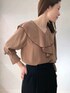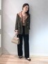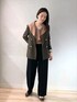 ジャケット×甘めブラウスコーデ ●ウォッシャブルシャークダブルジャケット オンオフおすすめのジャケット 軽めで 中に薄手ニットなら全然着用できる ので、アウターにも使えます! ●ストレッチジョーゼット ラッフル衿配色ブ ラウス 大きめラッフル衿はとろみのある ジョーゼット素材のため ボリュームが出すぎず華やかで インナーにも使いやすいブラウス ●ウォッシャブルツイルタックワイドパンツ オンオフ着回しのできるワイドパンツ センタープレス入りでスッキリ見え するので、JKなどに合わせると きちんとスタイルに ニットやカットソーでデイリーにも◎